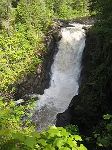 Moxie Falls is a waterfall in Somerset County, Maine. At a vertical drop of over 90 feet (30 m) into a pool about 17 feet (5 m) deep, Moxie Falls is one of the highest falls in New England.[1] The falls are part of Moxie Stream which flows from Moxie Pond into the Kennebec River approximately 1 kilometer (0.62 mi) downstream the falls. Moxie Stream drains Moxie Pond approximately 5 miles (8.0 km) upstream of the falls.