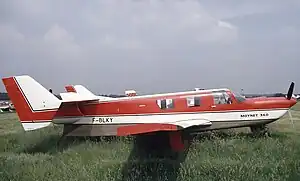 The second prototype was of a more powerful and slightly larger variant designated the model 360-6; it first flew on 25 May 1965.[6] This model had a choice of engines, either 290 hp (216 kW) Lycoming IO-540 six cylinder engines driving constant speed, three-bladed propellers, or 310 hp (231 kW) Lycoming TIO-541 engines. The span was increased by 0.37 m (15 in) and length by 0.64 m (25 in).[4][5] The increased length allowed seats for 6-7, with two rows of two single seats and a bench seat at the rear that could accommodate 2 or 3. The cabin was sound-proofed and air conditioned and could be pressurised. Access was via a forward starboard side door. There was baggage space behind the cabin with its own external door. The sole 360-6 was registered as F-WLKY.[4]