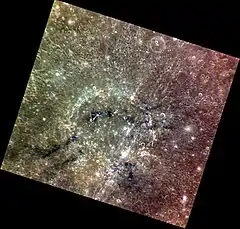 - ↑ Chapman, C. R., Baker, D. M. H., Barnouin, O. S., Fassett, C. I., Marchie, S., Merline, W. J., Ostrach, L. R., Prockter, L. M., and Strom, R. G., 2018. Impact Cratering of Mercury. In Mercury: The View After MESSENGER edited by Sean C. Solomon, Larry R. Nittler, and Brian J. Anderson. Cambridge Planetary Science. Chapter 9.
