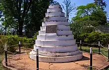 In Front of the tombs is a white and black painted cone-shaped monument built when Sir Emin Pasha met Kabalega in 1871 for the first time to tell him accept British rule.[1][12][6][13][14] It is made of 12 steps upward.[7]