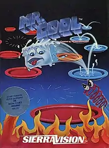 Mr. Cool is an action game designed by Peter Oliphant and published in 1983 by Sierra On-Line for the Atari 8-bit and Commodore 64 home computers.[1] The ports for the IBM PC (as a self-booting disk) and Apple II were written by John Redekopp and released the same year.[1] The game is heavily inspired by the 1982 arcade video game Q*bert.