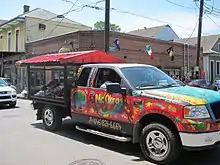 "Mr. Okra" drives his colorful truck while his son sits in the other seat ready to help with sales. Frenchmen Street Faubourg Marigny, New Orleans, September 2010.
