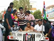 Jit Ganguly, Rudranil & Tanushree in a road show with Mrigendra Nath Maiti