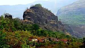 Mrugagad fort is a hill fort in Sudhagad taluka of Raigad district, Maharashtra, India. At a height of 1750 ft, the fort lies near Bheliv village, and is made of stone. The fort is very small in size and is in a form of spur radiating from the Western ghats. The fort is very close to the Lonavala, Khandala and Khopoli.
