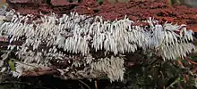 A large cluster of the fungus growing on a rotten conifer stump in Clatsop County, Oregon.