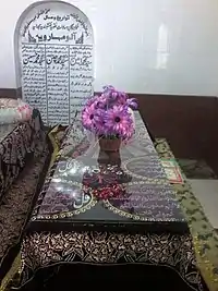 His mausoleum is in Allo Mahar. It is a square which is surmounted by a hemispherical dome. Many pilgrims visit it on his death anniversary.