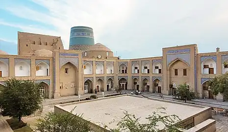 Muhammad Aminkhan Madrasah is an architectural monument in Khiva (1852-1855). Built by Muhammad Amin Khan. The Madrasah is located in the western part of the Itchan Kala. It was built in 1852–1855 with the funds and decree of the Uzbek ruler Muhammad Aminkhan. Muhammad Aminkhan Madrasah is the largest and most tiled in comparison to other Khiva madrasahs.