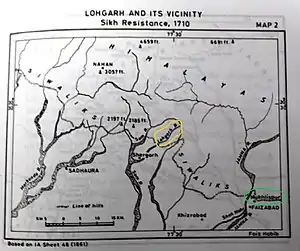 Dr. Harjinder Singh Dilgeer in his book Great Sikh General Banda Singh Bahadur, writes on page no 57, the Sikhs had captured the fort of Mukhlisgarh (Lohgarh) and had established it as capital.