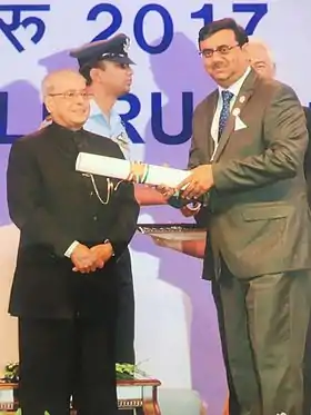 Purohit is recipient of the Pravasi Bharatiya Samman from Pranab Mukherjee, then president of India.[4]