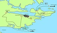 Mullet Creek is a small river in East Falkland. It is not a major watercourse, but is best known for its part in the Falklands War On April 2, 1982, Argentinian marines led by Guillermo Sanchez-Sabarots, landed his squadron of special forces at Mullet Creek, and advanced on Stanley. By 08.30 the battle was over and the Governor had ordered his ten Royal Marines (Navy Party 8901) to surrender. The Royal Marines, the Governor and any others who wished it were shipped out to Britain.
