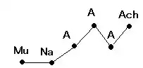 The Munach (Hebrew: מֻנַּח, also spelled Munah or Munakh), translating to English as "to rest," is a common cantillation sound. In Sephardi and Oriental traditions it is often called Shofar holekh. It is marked with a right angle below the corresponding word.[1]