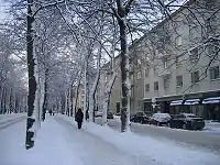 In the 1930s building regulations in Munkkiniemi had to be remade, because the new law didn't allow closed blocks anywhere else than in towns. This led to many problems because properties had already been sold. The effects can be seen around Munkkiniemi Avenue, where the otherwise closed blocks are open towards the south. It was during this time 1936-1938 that Munkkiniemi expanded really fast. 5 000 new housing rooms were built, especially around the avenue and by Laajalahti Bay and 150 million marks in building loans were issued in the municipality. After a few complaints and uncertainties about the building regulations Munkkiniemi was put into a building ban in October 1938 and it was extended many times until the end of World War II. One reason for the ban was the “water crisis” of 1938.[1]