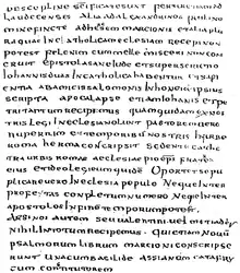 The Muratorian fragment was discovered in the Ambrosian Library in Milan by Father Ludovico Antonio Muratori (1672–1750), the most famous Italian historian of his generation. Realizing its significance and antiquity, he published it in 1740.[3] The manuscript was likely copied sometime during or near the 8th century at Bobbio Abbey.[4] A few lines of the Muratorian fragment were later found preserved in some codices of Paul's Epistles at the Benedictine abbey of Monte Cassino.[5] These documents date from the 11th and 12th centuries, and the copied lines largely concur with the Bobbio version with minor variations.