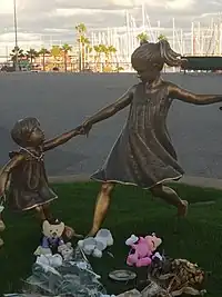 On October 18, 2022, a bronze statue was inaugurated in homage to Anna and Olivia, located in the La Gesta of July 25 children's park, next to the Plaza de España in the city of Santa Cruz de Tenerife. The work of the Basque-born sculptor based in Tenerife, Julio Nieto, the work, in the words of the author, "is a soft design that reminds us of Anna and Olivia, their happy life, that tender look between them, of complicity and trust".[23] The sculpture was donated by the Fundación Diario de Avisos. During the inauguration, the mother of the girls Beatriz Zimmermann and different political authorities were present.[24]