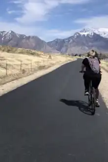 Before the piping and burying of the Murdock Canal, building a trail alongside the Murdock Canal was denied by the Provo River Water Users Association.[12] After the completion of the Provo Reservoir Canal Enclosure Project, construction of a paved trail began directly on top of the enclosed project. The Murdock Canal Trail is a 17 mile paved recreational trail that travels the majority of the length of the Murdock Canal. The trail runs through the cities of American Fork, Lehi, Orem, Pleasant Grove, Cedar Hills, Highland, and Lindon, beginning about a mile away from the mouth of Provo Canyon and ending near Traverse Mountain in Lehi. Along the length of the trail there are six trailheads with parking, water fountains, restrooms, and picnic tables. The trail crosses nineteen roads, has eight undercrossing tunnels, and travels across two bridges. The trail was completed in 2013 and was made freely available to the general public.[13]