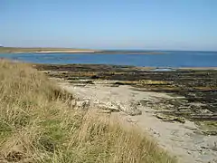 ![]() Murkle Bay Looking across Murkle Bay to the headland known as the Spur of Murkle. Viewed from the shore at East Murkle where the flagstone beds are fringed by a narrow beach of shell sand. | |