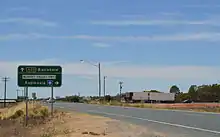 Sturt Highway was rerouted to reach Renmark through Victoria instead of via Wentworth in 1939,[9] subsuming the alignment of the Murray Valley Highway between Mildura and the state border with South Australia; it was subsequently truncated to terminate at Calder Highway in Hattah. Robinvale Road, a 2-mile road connecting the "irrigation settlement of Robinvale" to the highway, was declared a Main Road when it was surfaced for the first time in 1952,[10] and later declared a State Highway as Robinvale Highway in June 1983, between Robinvale and Lake Powell.[11][12]
