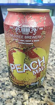 A can of Peach Malt, one of Murree Brewery's non-alcoholic products.