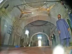 The mosque has three domes and it built on a vaulted platform of around 3 meters height. The width of the platform varies from 17 meters to 14 meters. Under the platform there are series of rooms which are now badly damaged.[1]