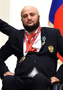 Musa Izamutdinovich Taimazov (Russian: Муса Изамутдинович Таймазов; born 8 April 1984)[1] is a Russian Paralympic athlete. He won the gold medal in the men's club throw F51 event at the 2020 Summer Paralympics held in Tokyo, Japan.[2] He also set a new world record of 35.42 metres.[3] He competed at the Summer Paralympics under the flag of the Russian Paralympic Committee.