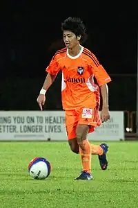 ![]() Musashi Okuyama playing against Hougang United in an S.League fixture at Hougang Stadium on April 13, 2012 | |||
