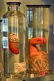 Shown are a collection of 19th century animal organ specimens (protected against decay with wax and varnish) which had been prepared for research (e.g. comparative anatomy), and educational purposes (e.g. veterinarian school). Also shown are anatomical drawings from that same period. Many specimens and drawings are from large mammals, cattle but even more large mammals of non European origin.