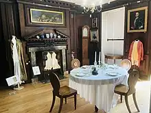The museum was founded in 1961 to provide the Farnham community with a collection dedicated to the history of the local area in an elegant Grade I listed Georgian townhouse[1] which still retains many original features, including a walled garden. Spread over two floors and in six rooms, displays include items from a large and eclectic collection; from ancient archaeological artefacts to nationally important artworks by local artists and an extensive costume collection.[3] Permanent displays include an elaborately embroidered nightcap belonging to Charles I, who in 1649 stayed in a nearby house on his way to trial in London;[4] a decorated and gilded cassone panel by W. H. Allen; artworks of local scenes by John Verney,[5] and objects connected with William Cobbett.