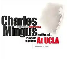 Music Written for Monterey 1965 (subtitled Not Heard... Played in its Entirety, at UCLA) is a live album by the American bassist, composer and bandleader Charles Mingus, recorded at Royce Hall in Los Angeles and released on Mingus's own Jazz Workshop label in 1966.[1] The album was rereleased by Sue Mingus on the Sunnyside label in 2006.