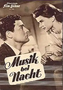 Music by Night (German: Musik bei Nacht) is a 1953 German comedy film directed by Kurt Hoffmann and starring Paul Hubschmid, Gertrud Kückelmann and Curd Jürgens.[1] It was shot at the Bavaria Studios in Munich. The film's sets were designed by the art director Robert Herlth.