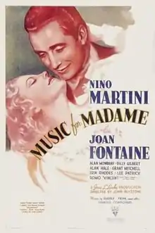 Music for Madame is a 1937 American musical comedy film directed by John G. Blystone and written by Gertrude Purcell and Robert Harari. The film was released on October 8, 1937 by RKO Pictures.[1][2][3]