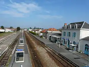 Mussidan is a railway station in Mussidan, Nouvelle-Aquitaine, France. The station is located on the Coutras - Tulle railway line. The station is served by TER (local) services operated by SNCF.