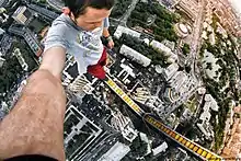 Pavlo Gennadiyovich Ushivets (Ukrainian: Павло Геннадійович Ушивець, Russian: Павел Геннадьевич Ушивец,[1] born 21 January 1987), better known as Mustang Wanted, is a Ukrainian urban climber and Internet celebrity.[2] He is known for the high-altitude stunts he performs around the world with little or no safety equipment.