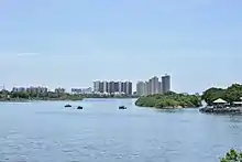 Muttukadu boat house (Tamil: முட்டுக்காடு படகுக் குழாம்) is a water sport facility on the East Coast Road at Muttukadu, Chennai City, Kanchipuram district, Tamil Nadu, India, offering rowing, wind surfing, water skiing, and speedboat riding. It is a backwater area of the Bay of Bengal located 36 km (22 mi) from the city centre and 23 km (14 mi) from Adyar on the way to Mamallapuram. The boat house was inaugurated in 1984 and has 15 row boats, 27 speedboats and 9 pedal boats,[1] besides two high-speed aqua scooters.[2] The water depth varies between 3 ft and 6 ft.[3] It is owned and operated by the Tamil Nadu Tourism Development Corporation (TTDC). The boating spot receives more than 4,000 visitors every weekend.[4]