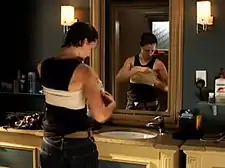 ![]() Adam binds his breasts as a temporary body modification to present his gender as male. | |