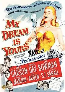 My Dream Is Yours is a 1949 American Technicolor musical romantic comedy film directed by Michael Curtiz and starring Jack Carson, Doris Day, and Lee Bowman.