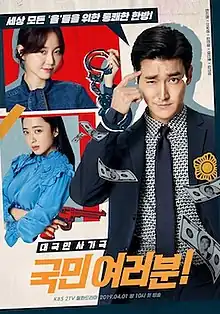 My Fellow Citizens![4] (Korean: 국민 여러분!; RR: Gungmin Yeoreobun) is a 2019 South Korean television series starring Choi Si-won, Lee Yoo-young and Kim Min-jung. It aired from April 1 to May 28, 2019 on KBS2.[5][6]