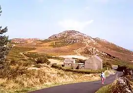 Mynydd Bodafon (Bodafon Mountain) is a small collection of peaks including the Arwydd (The Sign or signal) which is the highest point on the island of Anglesey (although not in the county of Anglesey — see Holyhead Mountain). It lies about 2+1⁄2 miles west of the coastal town of Moelfre and ⅔ of a mile south-west of the hamlet of Brynrefail. The meaning of Bodafon is obscure. Bod is a common placename element meaning 'dwelling' and afon here is probably a corruption of the personal name A(e)ddan (afon is Welsh for 'river' but topography rules that out).[1]