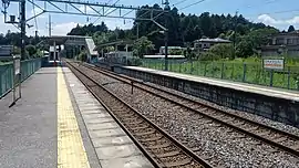 The station consists of two opposed side platforms, connected to the station entrance by a footbridge.