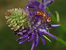 The adults can be encountered feeding on nectar of many species of flowering plants.[5] Their larvae are endoparasites of Hymenoptera aculeata.