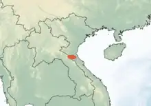 The species is endemic to Southeast Asia. It is only known to occur in only two localities in Vietnam (Ha Tinh province) and Laos (Khammouan province). It is found from 200–1,300 m (660–4,270 ft) above sea level.[1][4]