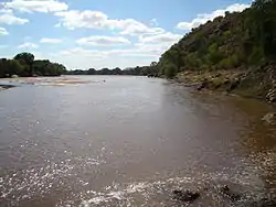 The Mzingwane River is an ephemeral river with flow generally restricted to the months when rain takes place (November to March), with most flow recorded between December and February, except where it has been modified by dam operations.[2] The river contributes 9.3% of the mean annual runoff of the Limpopo Basin, making it the third largest tributary to the Limpopo basin.[1]