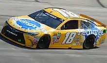 On June 15, 2007, Busch was announced to be leaving Hendrick Motorsports after the end of the 2007 season. A contract extension had been proposed, but instead Dale Earnhardt Jr. was signed to replace Busch starting with the 2008 season.[39] Busch stated that the decision to terminate his contract had been mutual, but it had been influenced by a change in an agent.[44] On July 7, 2007, Busch battled Jamie McMurray in the Pepsi 400, finishing second to McMurray by only 0.005 seconds.[45] In August, Busch announced that he would be joining Joe Gibbs Racing for the 2008 season, replacing J. J. Yeley in the No. 18 Toyota. His tenure with Hendrick Motorsports ended at Homestead with a 20th place finish and a 5th place finish in the final standings.[46] Busch stated with Graham Bensinger in 2021 that the 2007 All-Star race incident along with other outbursts led to a breakdown and termination of relationship between him, Rick Hendrick and Hendrick Motorsports.[47]