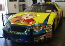 In 2007, Busch became the first Nextel Cup Series driver to win in the Car of Tomorrow, winning the Food City 500 at Bristol Motor Speedway in March over Jeff Burton, despite winning, Busch stated an intense dislike of the Car of Tomorrow after the race stating "I'm still not a very big fan of these things. I can't stand to drive them, they suck."[33] The win was the 200th NASCAR national touring series win for Hendrick Motorsports,[34][N 3] the 600th NASCAR victory for Chevrolet, and the first win for a Chevrolet Impala in NASCAR since Wendell Scott won at Speedway Park in Jacksonville, Florida in December 1963.[36][N 4] At Texas Motor Speedway in April, Busch left the track without informing his team after an accident; Dale Earnhardt Jr. was asked by the team to relief-drive once the car was repaired.[38][39] Later at Talladega Superspeedway in the Busch Series Aaron's 312, Busch flipped his car seven times in a wreck with Tony Stewart and Casey Mears, causing his HANS device to crack from the force of the wreck.[40]