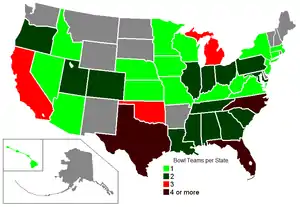 ![]() Bowl sites by state | |||||||||||||||||||||||||||||||||||||||||||||||||||||||||