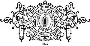 At a meeting of “colliery owners, viewers, and others interested in the Coal Trade” on 3 July 1852, it was proposed to form a society to discuss the ventilation of coalmines, prevention of accidents and other items connected with the general working of coalmines. It was to be called "The North of England Society for the Prevention of Accidents and for other purposes connected with mining", and Nicholas Wood would be chairman.[12] The title actually adopted was the North of England Institute of Mining Engineers, changed in 1870 to North of England Institute of Mining and Mechanical Engineers.[13] A committee was appointed to draw up rules and the inaugural meeting was held on 3 September 1852 at which Wood delivered the inaugural address at the lecture theatre of the Literary and Philosophical Society. In this address he gave the aims of the Institute: