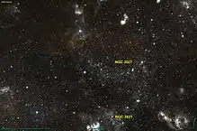 NGC 2027 (also known as ESO 86-SC13) is a 12th magnitude open cluster located in the Dorado constellation which is also part of the Large Magellanic Cloud and was discovered by James Dunlop on November 6, 1826.[2] Its apparent diameter is 0.7 arcminutes.[2]