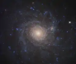 Despite being classified as a late-type galaxy, NGC 4571 has features more typical of spiral galaxies of earlier Hubble type such as a high color index, both low star formation rate and H-Alpha brightness, and relatively little neutral hydrogen,[3] suggesting it may have lost most of its gas due to interactions with Virgo's intragalactic medium and/or past interactions with other galaxies of the cluster.[4][5][6]