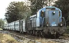 In the same year, 1975, they were sold to Spain where they served with the Ferrocarriles de Vía Estrecha (FEVE) in a blue livery and with the numbers 1421–1425 on the railway line between Gijón and Lagreo/Laviana.[4][3] After this railway was converted to narrow gauge with a gauge of 1000 mm in 1982, the 1421–1425 were taken out of service and scrapped.[4][3]