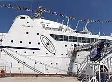 Savannah was listed on the National Register of Historic Places on November 14, 1982.[4] She was designated a National Historic Landmark on July 17, 1991.[5] Savannah is notable as one of the most visible and intact examples of the Atoms for Peace program, and was designated a National Historic Landmark in advance of the customary fifty-year age requirement because of her exceptional national significance.[10]
