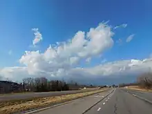 Less than a mile from the Thruway, NY 332 intersects Collett Road, the final roadway to cross the median of NY 332, at a four-way signalized intersection prior to crossing over the Ontario Central Railroad via an overpass. Midway between the Thruway toll barrier and the railroad, NY 332 north intersects Loomis Road while NY 332 south meets Gateway Drive. Due to the closed median, only right turns are permitted, both from NY 332 and the intersecting roads. In the 900 feet (270 m) north of the junction, the divided highway, in place from the Canandaigua city line northward, comes to an end, briefly making NY 332 a six-lane undivided highway before the designation terminates at the ramps for exit 44 of the New York State Thruway.[4] The connection to the Thruway makes NY 332 the primary route for travelers destined for Canandaigua from locales to the northwest such as Rochester and Victor.[7]